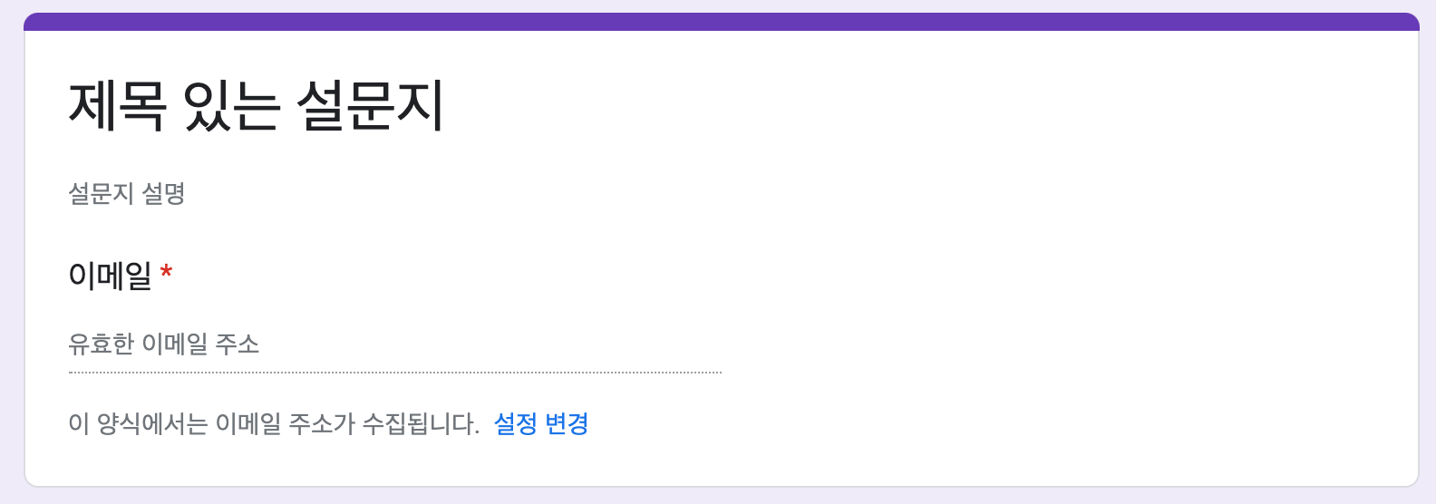 이메일 수집을 할 경우에는 필수 값으로 입력을 받는 단답형이 추가됨.